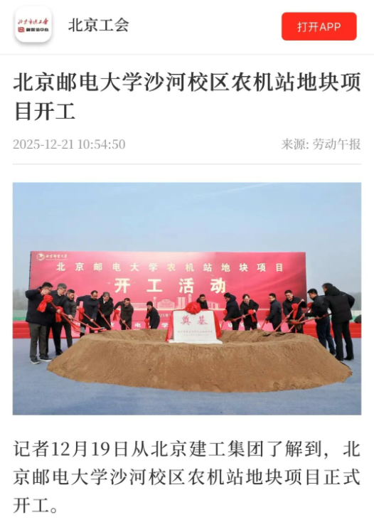 12月19日,北京邮电大学沙河校区农机站地块项目正式开工,标志着该项目进入实质性建设阶段。